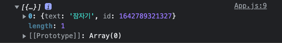 input 창에 '잠자기'를 입력한 후 로그를 찍어보면 아래와 같이 뜬다.