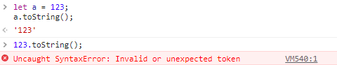 이는 코드를 실행할 때 "123." 이라는 것이 나오게 되면 숫자 뒤의 점을 소수점으로 인식하여 그 뒤에 숫자가 나올 것으로 예상하기 때문이다. 숫자가 나와야 하는데 toString()이 나오게 되니까 에러가 발생하는 것이다.