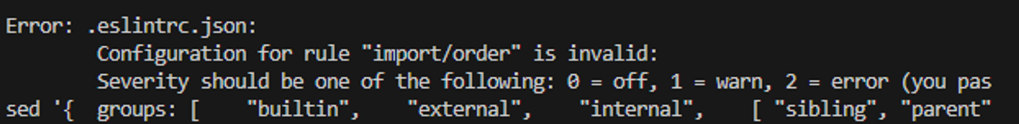 정해진 import rules에 어긋났을 때 어떻게 처리할 것인지를 정하는 옵션이다. off, warn, error 3가지가 있는데 나는 error로 처리하도록 했다.