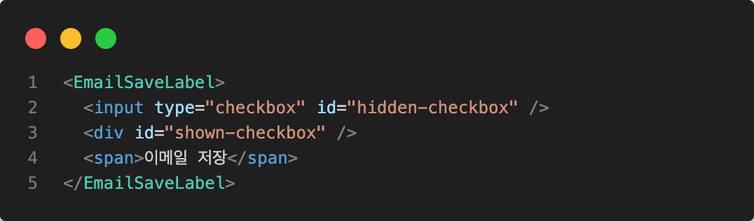 - input을 숨기고, label로 input 값을 컨트롤한다. 이때 전체를 label로 감싸서 텍스트 클릭으로도 컨트롤 할 수 있도록 한다.